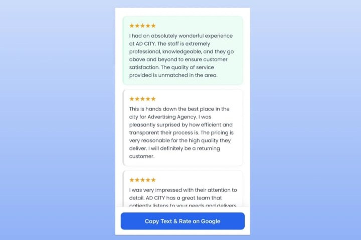With one tap, the review is posted directly on Google.